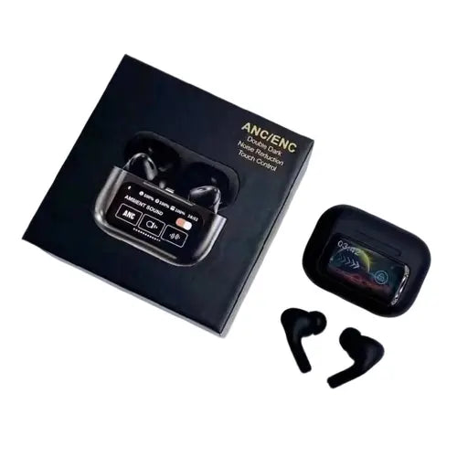 Experience next-level sound with the A9 Pro ANC Wireless Earbuds. Featuring a sleek Titanium Touch Display case, advanced Active Noise Cancellation (ANC), and Bluetooth 5.4 for ultra-stable connection. Designed for comfort, clarity, and control — all at your fingertips.